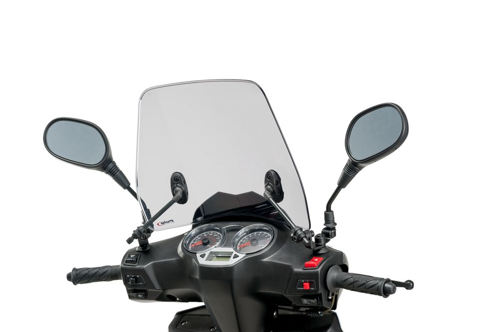 Auf Grund der größen Nachfrage unserer Kunden wurde die Trafic-Verkleidung so konstruiert, dass die Höhe der Windschutzscheibe T.S. von Puig nach Maß reduziert werden kann. Sie verkörpert urbanes und kosmopolitisches Design mit hervorragendem Schutz vor Wind und Kälte. Trotz niedrigerer Scheibe, die einen besseren aerodynamischen Zustand ermöglicht. Puig besteht aus 3 mm dickem Polycarbonat und bietet die Möglichkeit, die T.S. Scheibe in klarer oder getönter Farbe zu erwerben. Für den Einbau der Trafic-Verkleidung wird vom Hersteller ein spezielles Kit für Motorrollermodelle mitgeliefert. Bei Bedarf bietet Puig auch ein Universalmodell für jene Motorräder an, wo Nachfrage besteht, begleitet von einem kompletten Anbausatzes.