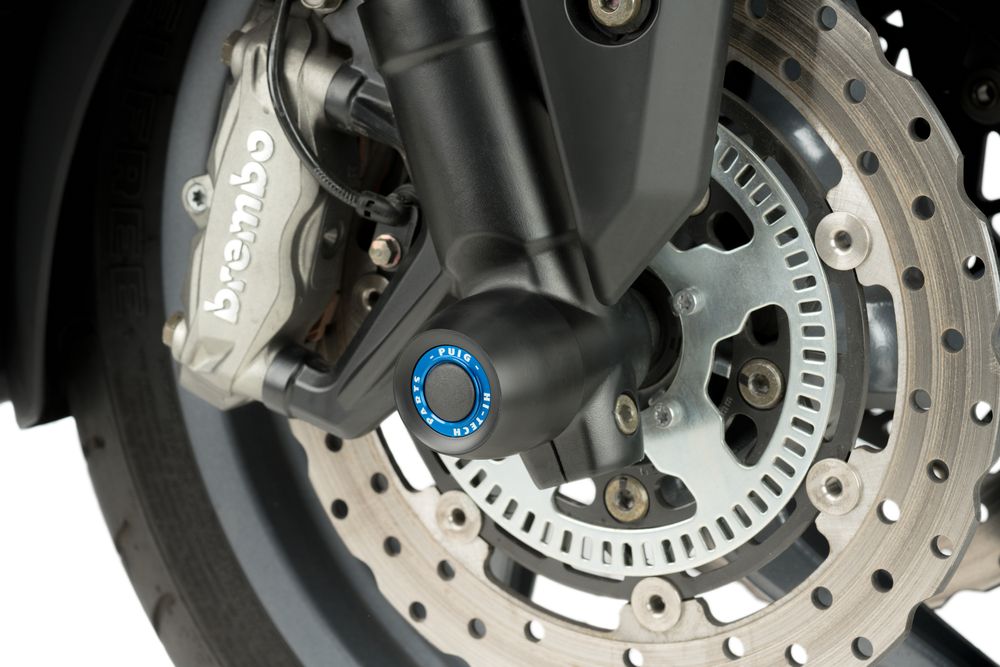 Schützen Sie die Gabel Ihres Motorrads und schmücken Sie es mit einem Wettkampftouch, und zwar mit dem PUIG-Achsregler PHB19. Hergestellt aus Nylon, mit einem reduzierten Gewicht von 265 g und 40 mm Länge x 50 mm Durchmesser, ist er der perfekte und integrale Schutz für Gabel und Aufhängung. Der Racing-Look verleiht Ihrem Bike den Racing-Charakter, den Sie so sehr schätzen, und zusätzlich zum schwarzen Achsregler bietet PUIG die Möglichkeit, eloxierte Ringe mit verschiedenen Farben zu erwerben, um die Farbe des Teils entsprechend dem Geschmack des Fahrers zu ändern. Ringe werden separat vom Schieberegler angeboten.