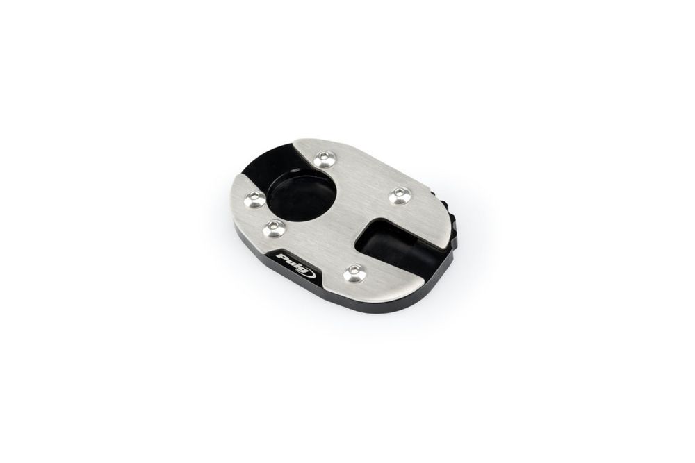 Verleihen Sie Ihrem Motorrad mit der neuen Fußstandverbreiterung von PUIG mehr Stabilität und Auflagefläche. Entwickelt wurde die Verbreiterung des Ständers um das Risiko von Stürzen während es gepark ist zu verringern. Sie ist 100% breiter als die originale und vereinfacht das Abstellen auf unebenen Böden. Die eine Hälfte ist aus rostfreiem Stahl, die andere aus Aluminium angefertigt. Das Aluminium wurde aus einem großem Block gefräßt und anschließend eloxiert. Die Materialien bieten eine hohe Widerstandsfähigkeit bei gleichzeitig geringem Gewicht (110-160g je nach Modell). Durch die Verbreiterung von PUIG wird Ihr Motorrad nichts mehr so leicht umhauen.
