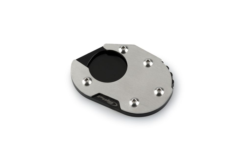 Verleihen Sie Ihrem Motorrad mit der neuen Fußstandverbreiterung von PUIG mehr Stabilität und Auflagefläche. Entwickelt wurde die Verbreiterung des Ständers um das Risiko von Stürzen während es gepark ist zu verringern. Sie ist 100% breiter als die originale und vereinfacht das Abstellen auf unebenen Böden. Die eine Hälfte ist aus rostfreiem Stahl, die andere aus Aluminium angefertigt. Das Aluminium wurde aus einem großem Block gefräßt und anschließend eloxiert. Die Materialien bieten eine hohe Widerstandsfähigkeit bei gleichzeitig geringem Gewicht (110-160g je nach Modell). Durch die Verbreiterung von PUIG wird Ihr Motorrad nichts mehr so leicht umhauen.