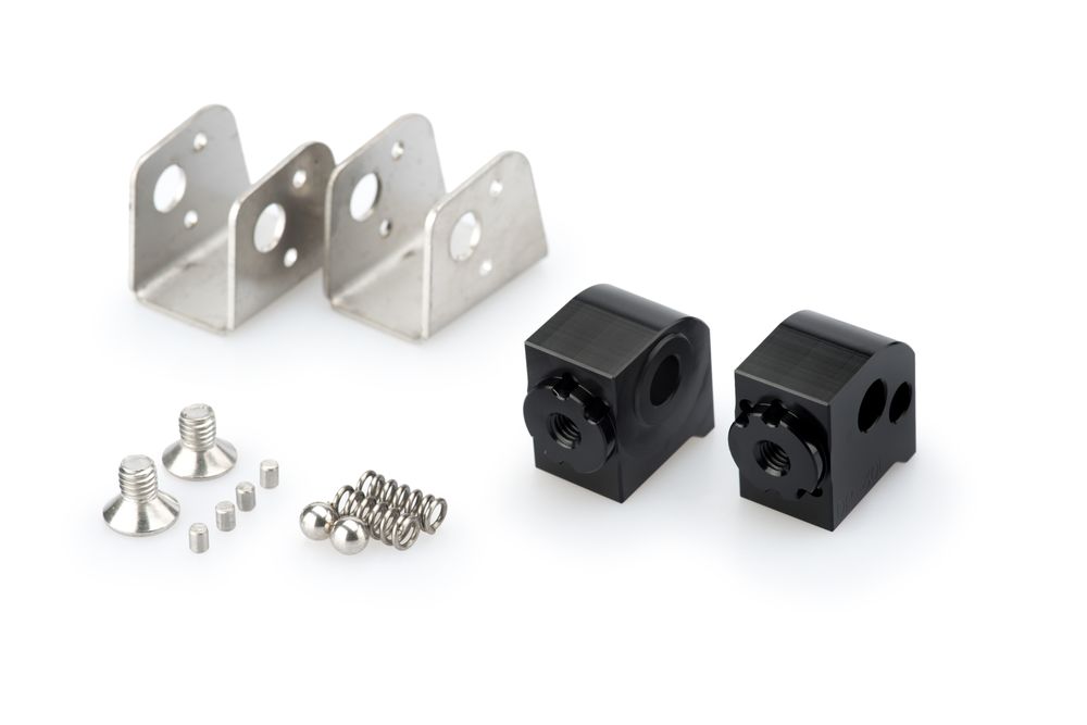 Die Vintage Fußrasten von Puig sind so konzipiert, dass sie sich natürlich an Motorräder im Retro-Stil anpassen, sowohl für die original-Serie als auch für die meisten persönlichen Vorbereitungen. Diese Fußstützen werden ausgehend von einem Aluminiumblock hergestellt, auf dem eine eloxierte Oberfläche hergestellt wird, auf der wiederum eine Gummiauflage montiert ist, um die Griffigkeit des Schuhs und die Isolation von Vibrationen zu verbessern. Trotz seiner klassischen Formen wurde die Ergonomie bei der Gestaltung berücksichtigt, wobei das geneigte äußere Ende die Bodenfreiheit erhöht. Seine Abmessungen von 72 mm x 27 mm ermöglichen eine korrekte Abstützung des Fußes und im Körper wurden einige Markierungen aufgezeichnet, um die Präzision bei der Montage zu gewährleisten, wodurch die Neigung reguliert werden kann. Die Vintage-Fußrasten sind in Schwarz und Silber erhältlich, wiegen 90 Gramm und sind ABE-zertifiziert und TÜV-zertifiziert.