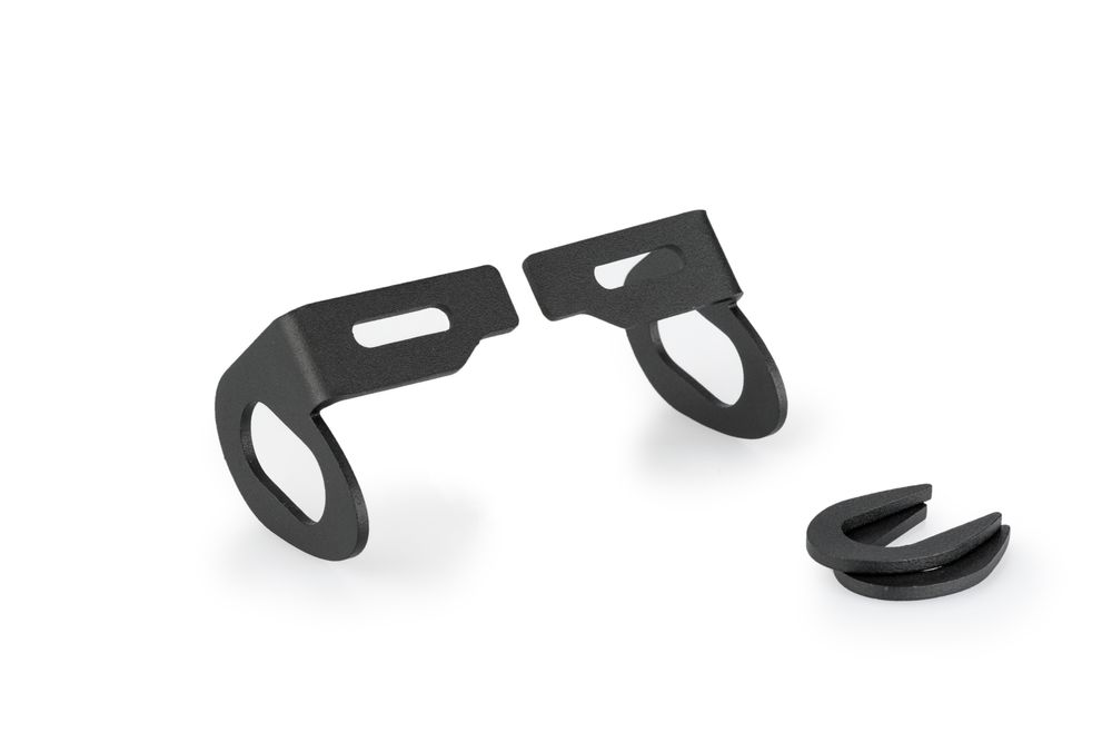 Mit dieser Halterung können Sie die originalen Blinker Ihres Motorrads am Puig-Kennzeichenhalter montieren, ohne Änderungen an den elektrischen Verbindungen vorzunehmen. Das Teil ist aus Stahl gefertigt und hat eine schwarze EPOXI-Lackierung.