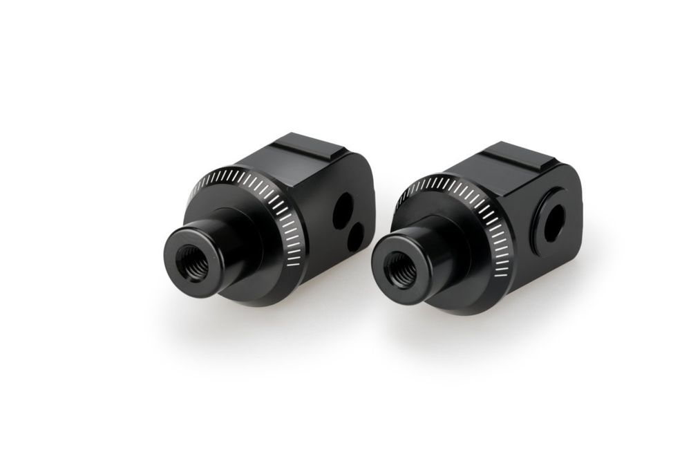 Die Vintage Fußrasten von Puig sind so konzipiert, dass sie sich natürlich an Motorräder im Retro-Stil anpassen, sowohl für die original-Serie als auch für die meisten persönlichen Vorbereitungen. Diese Fußstützen werden ausgehend von einem Aluminiumblock hergestellt, auf dem eine eloxierte Oberfläche hergestellt wird, auf der wiederum eine Gummiauflage montiert ist, um die Griffigkeit des Schuhs und die Isolation von Vibrationen zu verbessern. Trotz seiner klassischen Formen wurde die Ergonomie bei der Gestaltung berücksichtigt, wobei das geneigte äußere Ende die Bodenfreiheit erhöht. Seine Abmessungen von 72 mm x 27 mm ermöglichen eine korrekte Abstützung des Fußes und im Körper wurden einige Markierungen aufgezeichnet, um die Präzision bei der Montage zu gewährleisten, wodurch die Neigung reguliert werden kann. Die Vintage-Fußrasten sind in Schwarz und Silber erhältlich, wiegen 90 Gramm und sind ABE-zertifiziert und TÜV-zertifiziert.