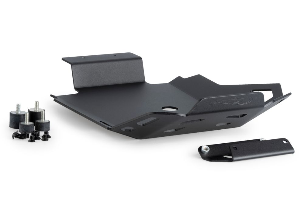 Schützt den Unterboden des Motors und die Krümmer der deutschen Adventure modelle. Mit seinem Anbau werden wertvolle und empfindliche Bereiche wie das Kurbelgehäuse und die Verbindung der Krümmer vor Beschädigungen und Stößen durch Steine und Schlamm geschützt, was umso wichtiger ist, wenn wir die Offroad-Möglichkeiten berücksichtigen, die beide Modelle bieten. Es passt perfekt zu den unteren Teil des Motorrads, integriert sich in das Ganze und verleiht ihm ein abenteuerlicheres und persönlicheres Image. Seine Installation hat keinen Einfluss auf die Aerodynamik des Motorrads. Der untere Teil des Protektors ist komplett flach, was es einfacher macht diese auf die Hebebühne zu stellen bei Inspektionen in der Werkstatt, und er hat Löcher, um eine gute Kühlung zu gewährleisten und Wasser, Schlamm oder kleine angesammelte Steine abzuleiten. Zusätzlich zur Erleichterung des Ölwechsel muss der Schutz nicht entfernt werden. Entworfen und hergestellt in Barcelona, besteht es aus hochwertigem 4 mm dickem Aluminium, was zu einem sehr widerstandsfähigen und leichten Stück führt, und hat eine mattsilberne eloxierte Oberfläche. Es umfasst spezielle Metallhalterungen mit Korrosionsschutzbehandlung, die für ein dezentes und elegantes Finish in strukturiertem Schwarz lackiert sind. Der Protektor ist am unteren Teil des Motorrads mit Anti-Vibrations-Gummistützen befestigt, die mögliche Schläge absorbieren, die der Protektor erhalten kann, die Aufprallkraft über die verschiedenen Befestigungspunkte verteilen und dadurch mögliche störende Geräusche beseitigen, die dabei entstehen wenn die Gummis werden nicht verwendet werden. Es ist schnell und einfach ohne mechanische Kenntnisse zu montieren, Sie müssen nur die Schritt-für-Schritt-Anleitung befolgen, die auf Papier geliefert wird und online nachgeschaut werden kann.