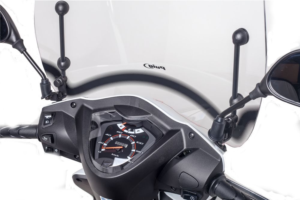 Direkte Weiterentwicklung der ersten Windschutzscheibe von Puig, The Carenabris T.S. ist die preisgünstigste Option für Benutzer, um sich während einer Fahrt durch die Stadt mit ihrem Motorrad, Roller oder Moped zu schützen. Hergestellt aus 3 mm starkem PMMA (Polymethylmethacrylat), einem Material, das sehr widerstandsfähig gegen Stöße ist und über eine hohe aerodynamische Form verfügt, ist es der beste Verbündete für Fahrten durch die Stadt. Neben der Schutzfunktion gegen Stöße und gegen die Wettereinflüsse bietet die T.S. Ihrem Motorrad eine beispiellose ästhetische Verbesserung. Puig bietet diesen Windschutz für die große Mehrheit der Scooter-Modelle an. Manche Modelle sind jedoch nicht so häufig vertreten, für diese gibt es dann die universale T.S. Scheibe mit einem model-spezifischen Anbausatz dazu. Zusätzlich zum Kit stellt Puig eine vollständige Bedienungsanleitung zur Verfügung, um die Installation der neuen Windschutzscheibe zu erleichtern.