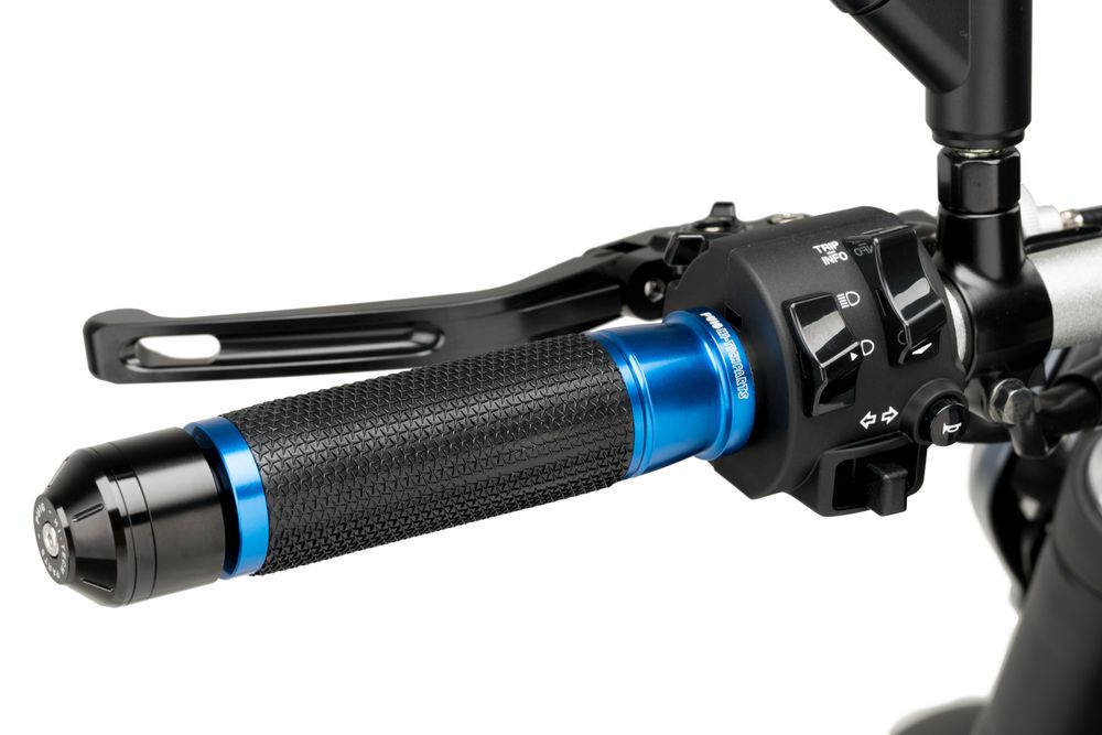 Ergänzen sie den Komfort Ihres Motorrades mit den den High Tech Griffen von Puig. Hergestellt aus Billet-Aluminium und eloxiert in verschiedenen Farben, ist es die perfekte Wahl, um die originalen Motorradgriffe zu ersetzten. Der Innengummi des Griffs fühlt sich sehr angenehm an, er hat eine rutschfeste Textur, um eine besseren Halt Grip zu gewährleisten. Die High Tech Griffe haben eine Länge von 119 mm und sind mit 94g ein Leichtgewicht. Sie eignen sich für Lenker mit einem Durchmesser von 22 mm und verfügen über Adapter für die Gasstange. Beachten Sie, dass die neuen High Tech Griffe von PUIG nicht mit dem elektronischen System Ride by Wire kompatibel sind.