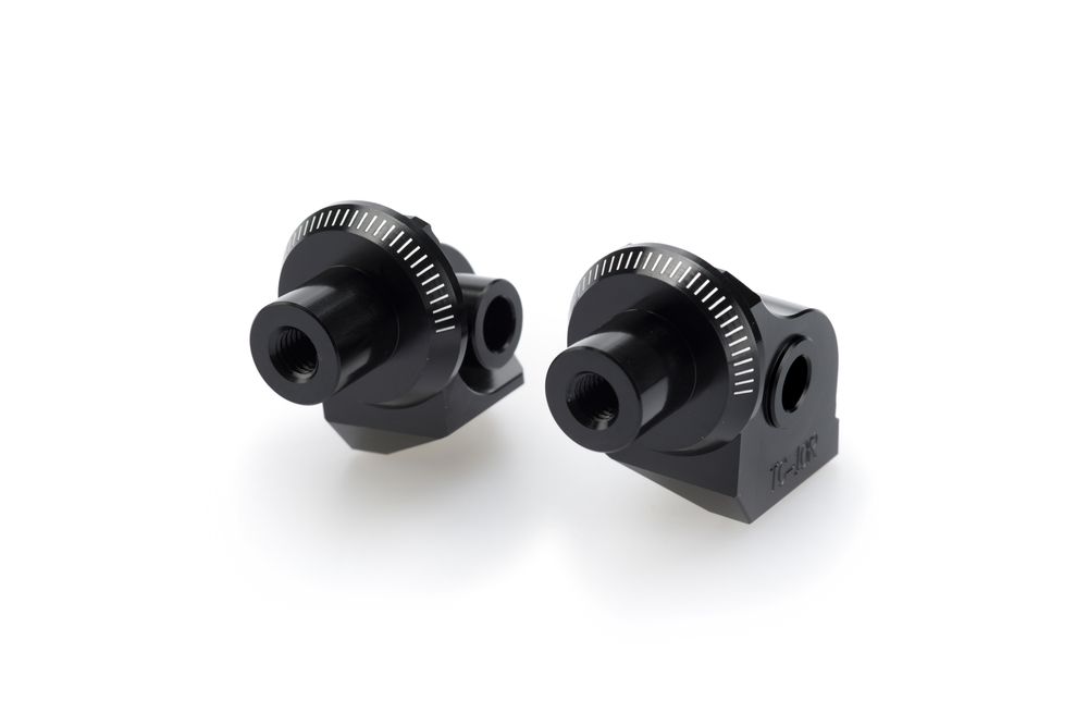 Die Vintage Fußrasten von Puig sind so konzipiert, dass sie sich natürlich an Motorräder im Retro-Stil anpassen, sowohl für die original-Serie als auch für die meisten persönlichen Vorbereitungen. Diese Fußstützen werden ausgehend von einem Aluminiumblock hergestellt, auf dem eine eloxierte Oberfläche hergestellt wird, auf der wiederum eine Gummiauflage montiert ist, um die Griffigkeit des Schuhs und die Isolation von Vibrationen zu verbessern. Trotz seiner klassischen Formen wurde die Ergonomie bei der Gestaltung berücksichtigt, wobei das geneigte äußere Ende die Bodenfreiheit erhöht. Seine Abmessungen von 72 mm x 27 mm ermöglichen eine korrekte Abstützung des Fußes und im Körper wurden einige Markierungen aufgezeichnet, um die Präzision bei der Montage zu gewährleisten, wodurch die Neigung reguliert werden kann. Die Vintage-Fußrasten sind in Schwarz und Silber erhältlich, wiegen 90 Gramm und sind ABE-zertifiziert und TÜV-zertifiziert.