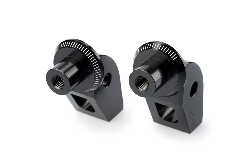 Die Vintage Fußrasten von Puig sind so konzipiert, dass sie sich natürlich an Motorräder im Retro-Stil anpassen, sowohl für die original-Serie als auch für die meisten persönlichen Vorbereitungen. Diese Fußstützen werden ausgehend von einem Aluminiumblock hergestellt, auf dem eine eloxierte Oberfläche hergestellt wird, auf der wiederum eine Gummiauflage montiert ist, um die Griffigkeit des Schuhs und die Isolation von Vibrationen zu verbessern. Trotz seiner klassischen Formen wurde die Ergonomie bei der Gestaltung berücksichtigt, wobei das geneigte äußere Ende die Bodenfreiheit erhöht. Seine Abmessungen von 72 mm x 27 mm ermöglichen eine korrekte Abstützung des Fußes und im Körper wurden einige Markierungen aufgezeichnet, um die Präzision bei der Montage zu gewährleisten, wodurch die Neigung reguliert werden kann. Die Vintage-Fußrasten sind in Schwarz und Silber erhältlich, wiegen 90 Gramm und sind ABE-zertifiziert und TÜV-zertifiziert.
