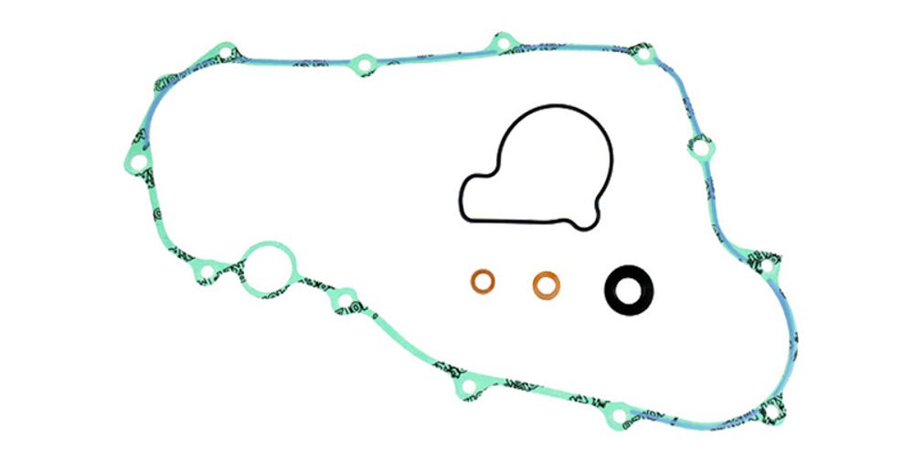 The water pump gasket kit includes the gaskets, copper washers and complete oil seals to overhaul the component. The kit also includes the crankcase gasket to allow the components to be replaced without having to purchase any additional kits.